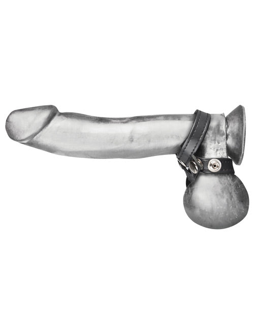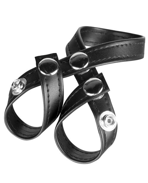 This ball divider/ cock ring will separate testicles while constricting the flow of blood to the penis. The device will keep the testicles in place, providing enhanced sensations and stimulation for the wearer.