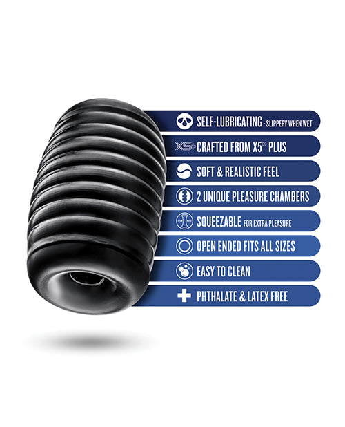 The Rize! Grasp is loaded with fun! This versatile pocket stroker is a man-cave essential. With self-lubricating technology, all you need is to add a little bit of water or saliva to your stroker to make it slippery and smooth, then slide right in! Grasp is made with premium X5® Plus, which feels incredibly silky to the touch, providing luxury with every movement. Featuring dual erotic pleasure chambers including a ribbed orb chamber and a nubby rub chamber, you'll experience the perfect combination of massaging sensations. Grasp naturally warms to your body temperature, adjusting to your touch to heat up your desires for a highly realistic feel. Grasp onto your stroker with textured grip, applying desired pressure to match your preferred intensity while stroking. Get ready to destress and release. This pocket stroker is small, discreet and easy to clean. Make your solo play the best time of day -? Let Grasp be the reason you Rize!