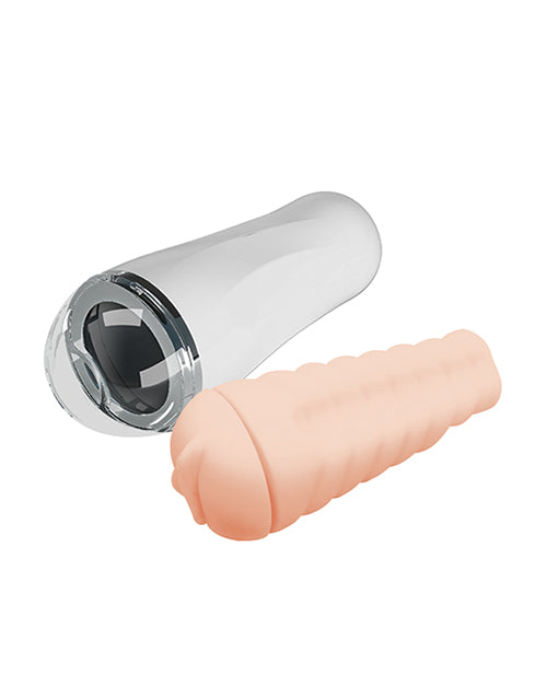 The tight pussy concealed in a hard plastic pearlescent finish case with real feel superskin inner sleeve has been moulded directly from a porn star, for an incredibly lifelike vaginal opening. Inside, the stroker has a series of ridges and pockets that create delicious suction and pleasurable sensations that feel remarkably like the real thing. Use with a little water-based lubricant and you'll wonder why you made do with your hand for so long!