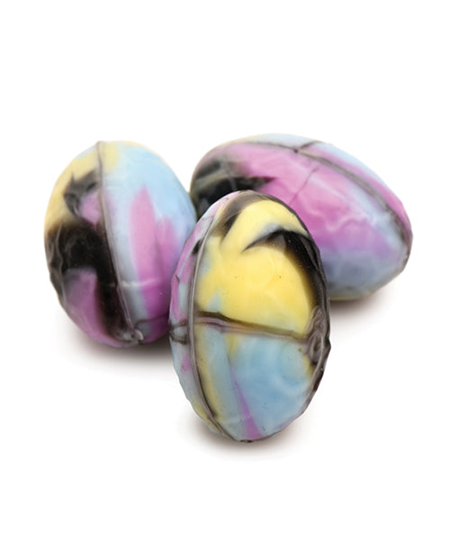 Be the brooding mate of this dragon with this Dragon Spawn Ovipositor dong! The pastel blue, yellow, pink and black rod has a unique texture of whorls, ridges, grooves and spikes that will send you to another world of pleasure! The hollow center is wide enough for the 3 silicone eggs to slip through and impregnate you with! The wide, flanged base makes it harness-compatible.