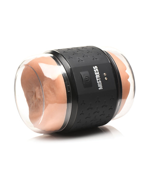 Curve Toys Mistress Vibrating Double Shot Pussy & Ass Masturbator . Compact ergonomic design. Two distinctly different entries Dual storage caps for clean storage. Ultra patterned tunnel. Extremely travel friendly. Made with our signature life-like Bioskin TPE. Phthalate & Latex Free. Made with USA material. USB rechargeable and vibrating.