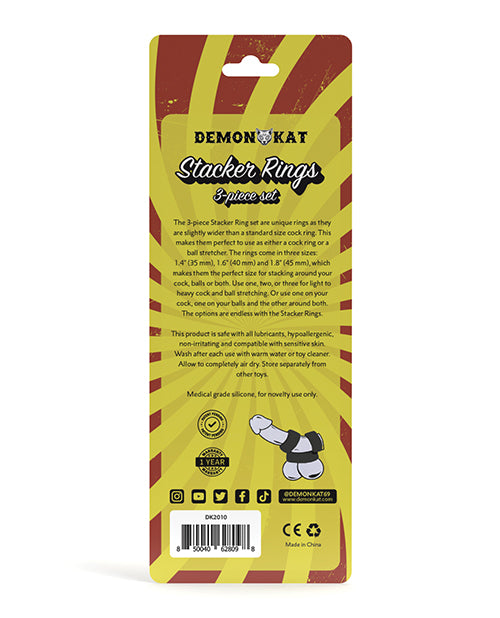 Demon Kat Stacker Rings 3 pc Set - Black
