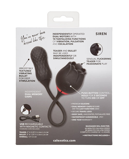 Experience the enchanting pleasure of the French Kiss Elite Siren and elevate your intimate encounters to new heights. This captivating flickering teaser is designed to ignite your senses and unlock a realm of sensual delight. With its textured vibrating bullet, it tantalizes and teases, offering 10 exquisite functions of vibration, pulsation, and escalation to fulfill your deepest desires.