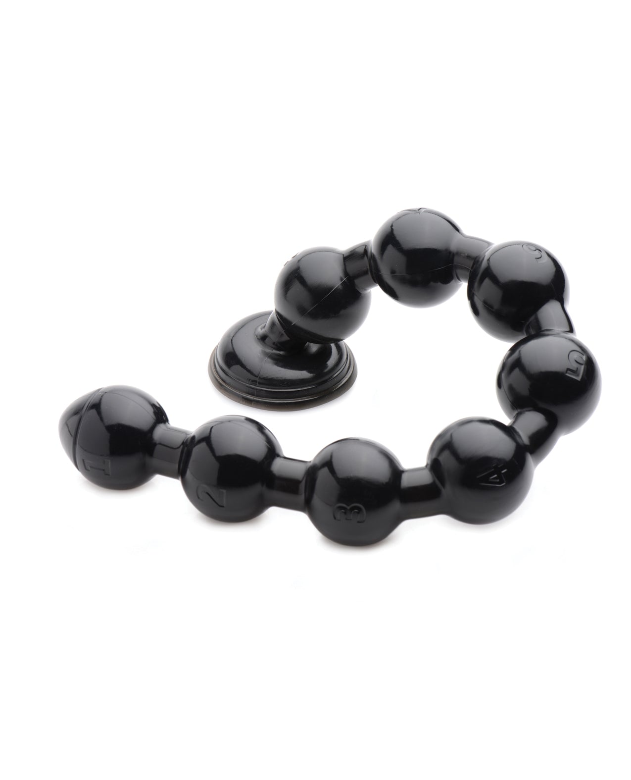 These big, bad beads are numbered 1 through 8 so that you can discover just how big of a size queen or king you really are. Suction down the base to a hard, flat surface and squeeze the slightly tapered tip of the first bulb into your orifice. Its considerable girth will have you impressed with your capabilities and begging for more. Fortunately for you, there is a long, flexible stack of round anal beads waiting to challenge you. The sleek, phthalate-free material is compatible with water-based and silicone lubricants and cleans off after use with mild soap and warm water.