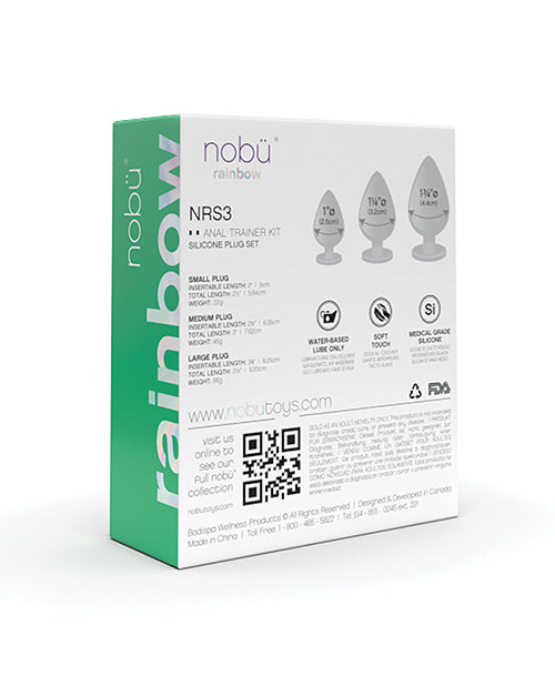 Nobü Rainbows' Silicone Anal Plug Set is designed with a strong suction cup on the end to give you all the pleasure and luxury you deserve. This body-safe, soft-touch silicone plug is perfectly proportioned for exquisite anal sensations. Choose the size, shape & colour to your liking and brighten up your day! Key Features: Strong Suction Cup. Lightweight. Soft Touch. Harness Compatible. Non-porous. Waterproof. Medical Grade Silicone. Cleaning: We always recommend using an antibacterial toy cleaner; they are specially designed to be gentle on intimate areas and toys. Lubricant recommendations: We always recommend using water-based lubricant with all your toys.