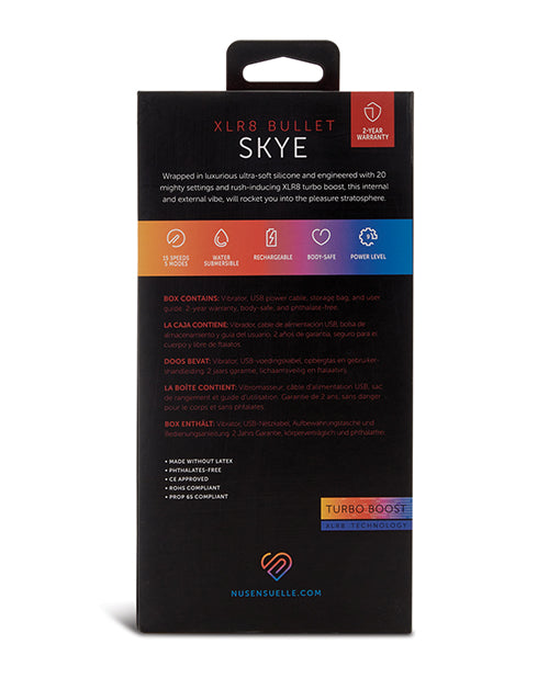 EXPERIENCE THE PINNACLE OF TOUCH and heightened sensory pleasure with the Skye XLR8 Vibe, now enveloped in our luxurious velvet touch liquid silicone. This ultra-soft material offers a cloud-like sensation, enriching every intimate moment. Meticulously designed for both internal and external play, Skye's bulbous head ensures expansive coverage, while its 20 innovative settings deliver unparalleled pleasure. For an exhilarating rush, activate the XLR8 turbo boost and ascend into the pleasure stratosphere.
