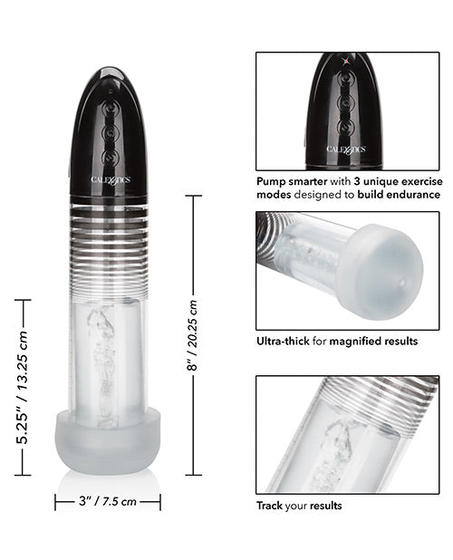 Maximize your pleasure tool with the OptimumSeries Automatic Smart Pump, a sleek, durable penis pump sex toy for men, made for superior suction and performance enhancement. Increase endurance, improve stamina and amplify your rod with 3 unique enhancement exercise modes. The sleek smart pump has easy-touch controls and a quick air release button for customizable pumping. While the thick open-end sleeve and tight, nubbed chamber give you sinful stroking pleasure with or without the pump. Never settle for less when it comes to the size of your pleasure with the Optimum Series.