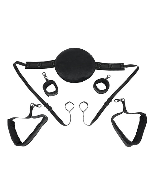 Take comfort to the next level with the Pivot Positioning Partner, an entirely new approach to our signature Sex Sling designs. The large, flat pillow design, provides the ultimate support cradle for your head and neck. Soft ankle cuffs connect to the padded shoulder straps with adjustable tethers to keep you as loose and free or tight and restrained as you like while the added thigh straps keep your legs supported without growing fatigued. Durable hardware helps keep you locked in with easy release and adjustability to cater to your unique needs and desires, no matter how they change in the moment.