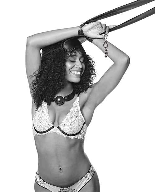 Turn your fantasy into a reality with all the toys you'll need to heat things up. Take control of the situation and experience pleasure you've only ever dreamed of with satin restraints, a satin blindfold, a breathable ball gag, and nipple ties.