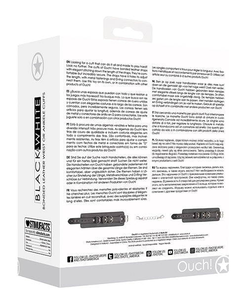 Shots Ouch Black & White Bonded Leather Hand/Ankle Cuffs - Black