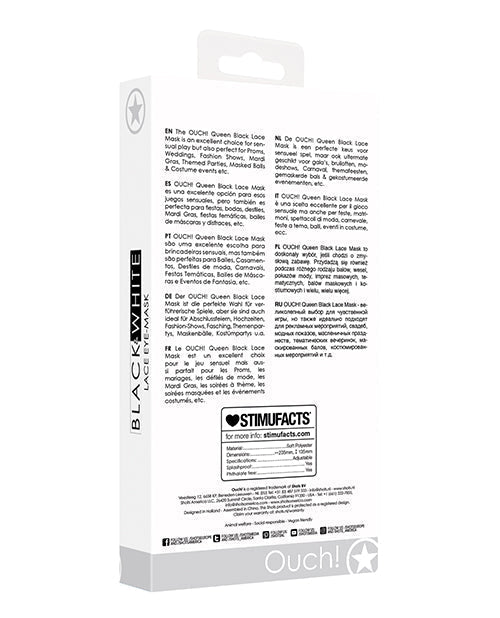 Shots Ouch Black & White Lace Eye Mask - Queen Black