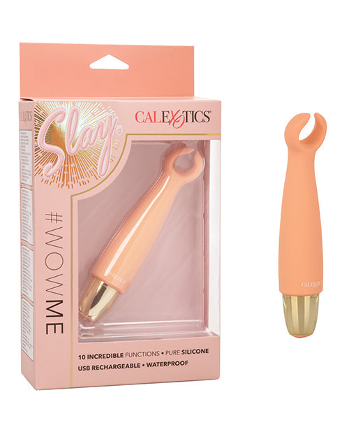 Slip the tickling Slay #WowMe into your luggage for knee-shaking pleasure wherever you go. The tickling teaser fits between your fingers to let you deliver pinpoint tantalization and thrill with flickering vibrations. Get playful while you flicker through 10 indulgent vibration, pulsation and escalation functions with the easy-touch control button. The unique flexible open design is great for exploring sensual sweet spots and delivering pinpoint stimulation with ease.
