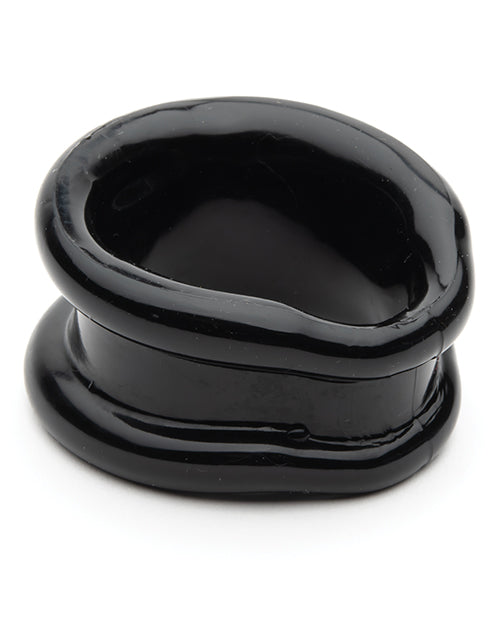 The Slinger Ring by Sport Fucker is both a ball stretcher and a cockring. It has a large footprint without a lot of mass. That means more stretch and flexibility for the well endowed male. When used as a ball stretcher, made to fit guys with large balls Material: TPR Rubber Dimensions: Interior diameter- 1.5" Length (at shortest point)- 1" Length (at longest point)- 1.25"