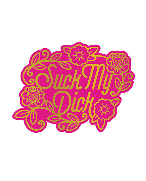 This "Suck My Dick" enamel lapel pin is a fun and sexy accessory. This pink pin with a metallic gold design elegantly says what you feel with class. Stick it on your jacket or hat or shirt or backpack or bag or purse it or give it as a gift and stick it on your friend!
