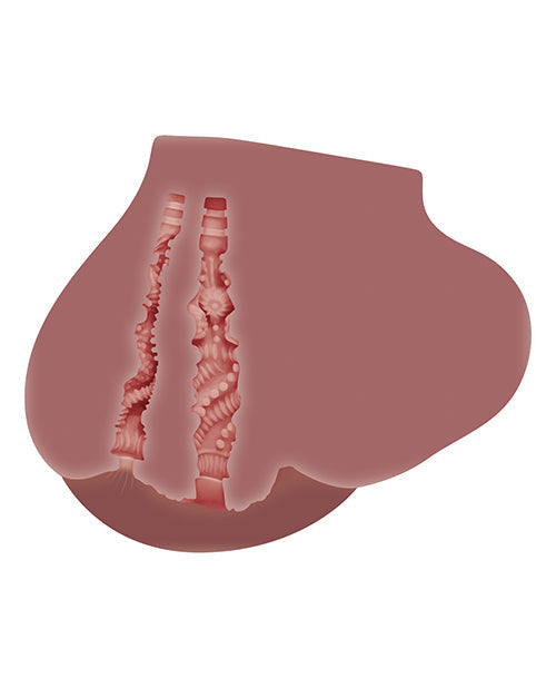 Now you can enjoy all the benefits of a life-like double-entry stroker while lying down! This unique vaginal and anal stroker is made from pliable and stretchy TPE rubber that feels so soft and smooth that it moves with your body for the perfect fantasy fulfilment. Enjoy a free movie starring gorgeous, sexy Ana Foxxx for some mind-blowing inspiration and take your time exploring both supple entries for an experience that will quickly become your go-to fave! Clean with ZT Masturbator Cleaner and a warm water rinse.